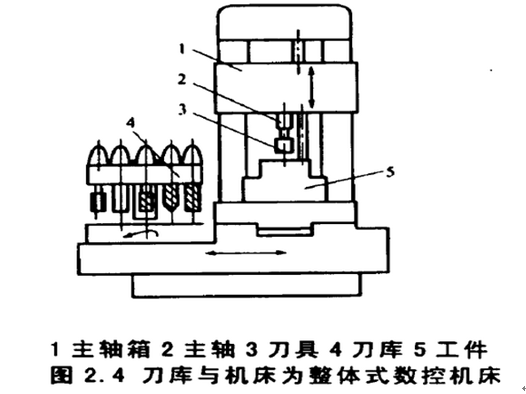 圖2.4所示為刀庫與機床為整體式數控機床的外觀圖。